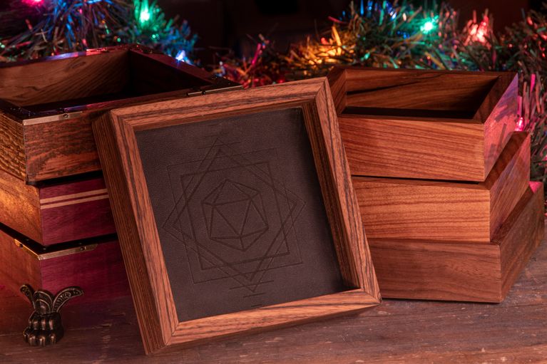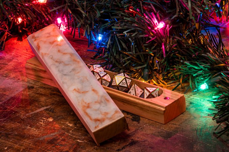 Dice boxes to fit any occasion. These highly specialized boxes fit any standard size of dice, and come in wood resin, or a mix of both.